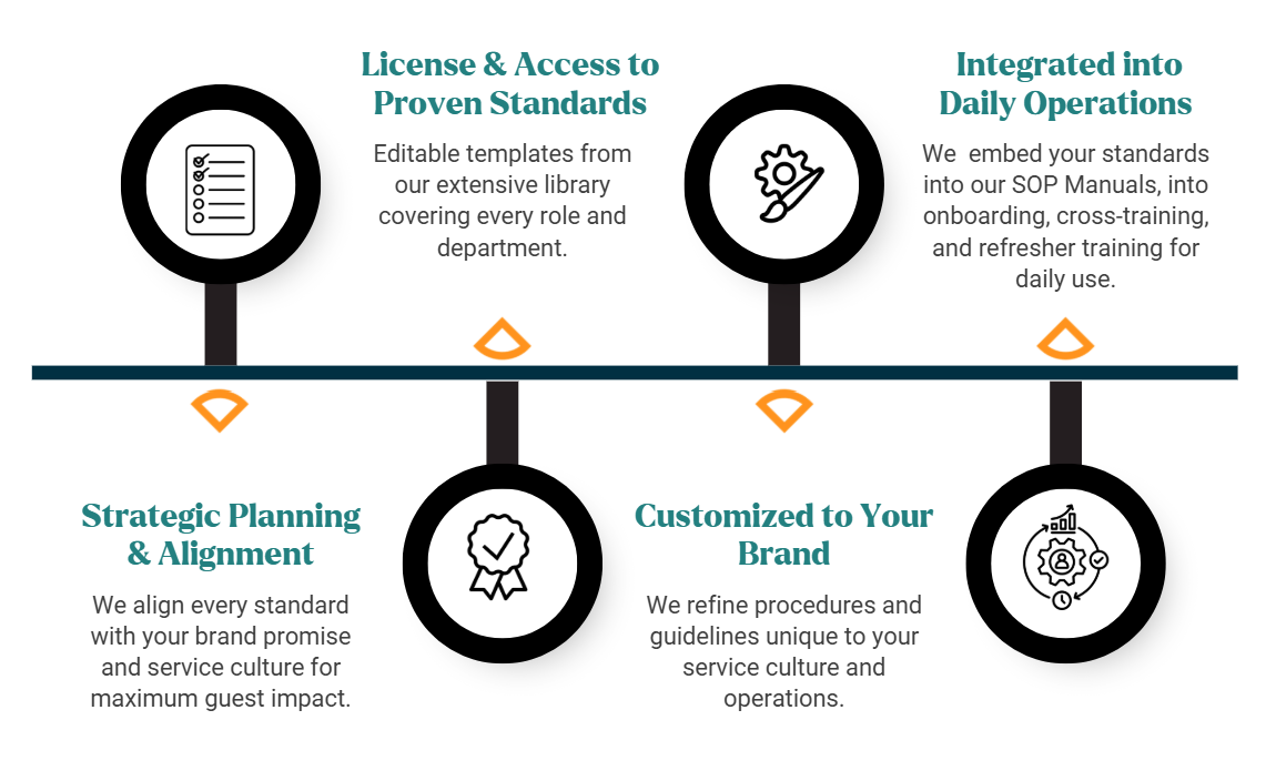 When your team knows exactly what’s expected, they can deliver exceptional service every time. Our performance standards outline the precise behaviors, actions, and service levels that create consistency your guests can feel in every interaction.
